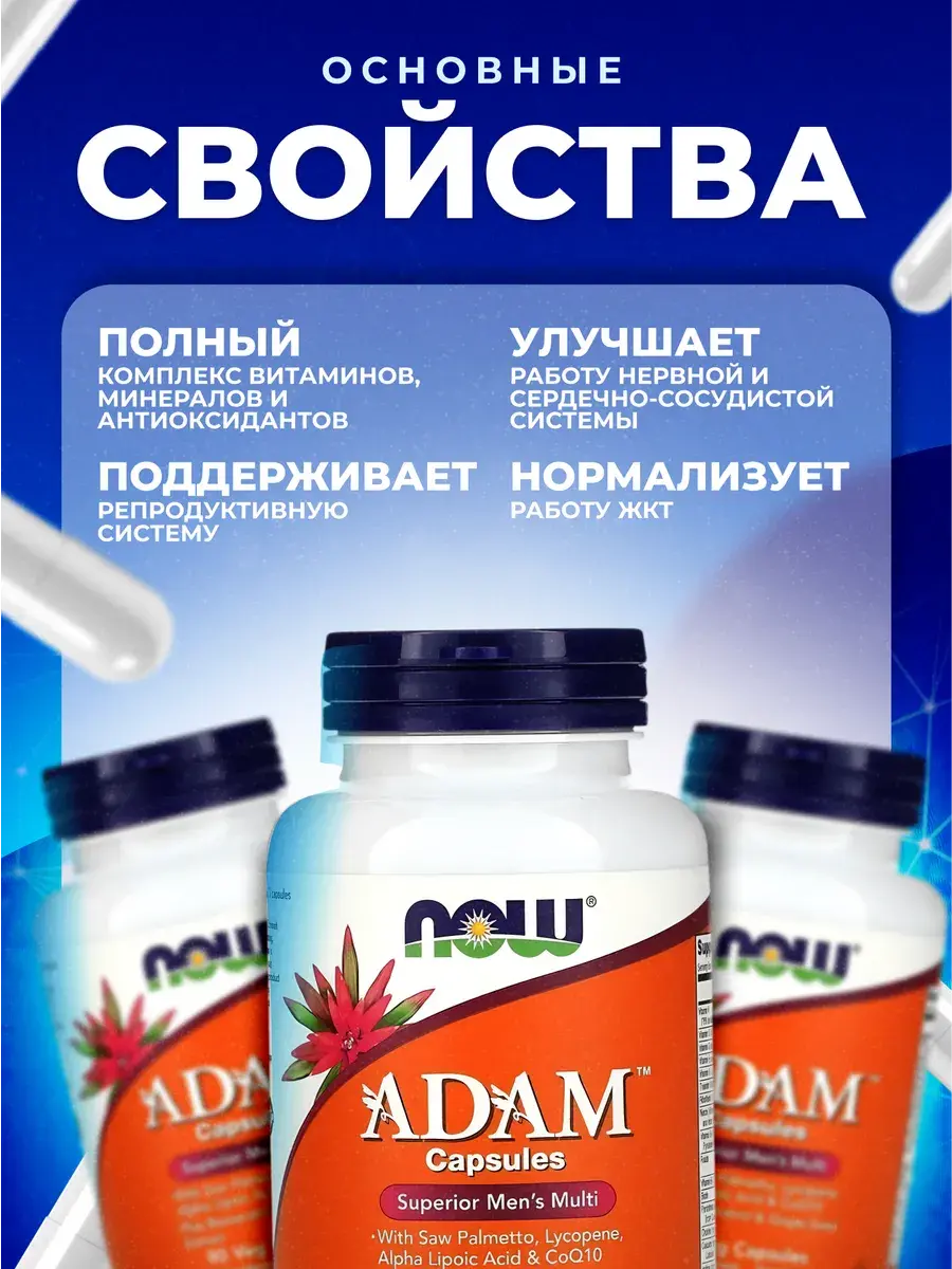 NOW ADAM - это комплексный витаминно-минеральный комплекс, специально разработанный для поддержания мужского здоровья. Формула NOW ADAM содержитcarefully selected витамины, минералы и другие питательные вещества, необходимые для поддержания оптимального уровня энергии, укрепления иммунитета и общего самочувствия. Регулярный прием NOW ADAM может помочь мужчинам в поддержании здоровья костей, мышц, сердечно-сосудистой системы и репродуктивной функции. Комплекс NOW ADAM - это удобный и эффективный способ позаботиться о своем здоровье и самочувствии.
